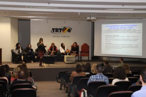 A promotora de Justiça da Infância e Juventude de Porto Alegre, Cinara Vianna Dutra Braga, apresentou o funcionamento do sistema de acolhimento institucional no município. A capital gaúcha conta atualmente com 84 casas de acolhimento, que recebem cerca de mil crianças e adolescentes que foram abandonados, são órfãos ou foram vítimas de violência. “Entre esses adolescentes, um grande percentual foi vítima de exploração sexual ou tráfico de entorpecentes, e muitas vezes são explorados no trabalho infantil pelos adultos que deveriam ser seus cuidadores. A grande maioria tem defasagem escolar. Quando completarem 18 terão que sair do espaço de acolhimento, e para onde irão?” questionou. A promotora apresentou projetos que vêm sendo realizados em rede, com a participação da Superintendência Regional do Trabalho, do MPT-RS, e o apoio do TRT-RS, que buscam preparar os jovens do sistema de acolhimento institucional por meio da inserção em vagas de aprendizagem. Também foram firmadas parcerias para o oferecimento de atendimento de saúde mental e de formação no Ensino Fundamental e Médio na modalidade de Educação de Jovens e Adultos (EJA), além do acesso a cursos técnicos. “São iniciativas que fazem parte do projeto ‘Aprendizando Porto Alegre” e buscam possibilitar que esses jovens possam efetivamente ter acesso à cidadania plena quando completarem 18 anos de idade”, explicou.