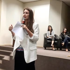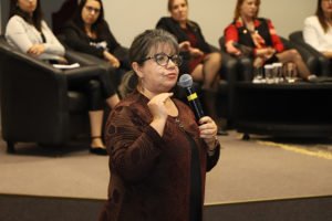 A coordenadora da Aprendizagem da Superintendência Regional do Trabalho e Emprego do Rio Grande do Sul, a auditora fiscal do Trabalho Denise González, também se manifestou. Em sua fala, Denise mostrou que existe um déficit de aprendizes no Estado: há uma demanda de 67 mil vagas, em cerca de 28 mil empresas. Entretanto, apenas 39 mil destas vagas estão preenchidas atualmente – um déficit de 28 mil jovens. Somente em Porto Alegre, o número de vagas disponíveis não preenchidas chega a 7,4 mil. “Tem lugar para todos esses problemas, todas essas demandas, todas essas deficiências”, afirmou a auditora. Denise também mostrou como a fiscalização da aprendizagem é feita e apresentou números referentes a quantidade de notificações e empresas notificadas, pois, de acordo com ela, muita gente diz não haver qualquer fiscalização em relação às tarefas exercidas pelos aprendizes. Ela terminou pedindo o apoio da plateia: “Eu conclamo a todos: sejam nossos parceiros”. “Nós temos ferramentas para encaminhar esses jovens para o mundo do trabalho. E qualificados”, concluiu.