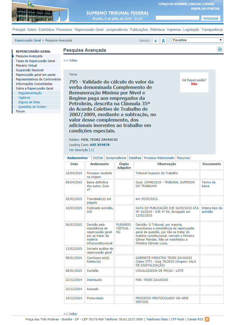 Para ter acesso ao Sistema Interno do STF tem que procurar um advogado que tenha cadastro assim poderá ver as peças processuais que podem estar relacionadas. Processo ARE 859878 – RECURSO EXTRAORDINÁRIO COM AGRAVO.