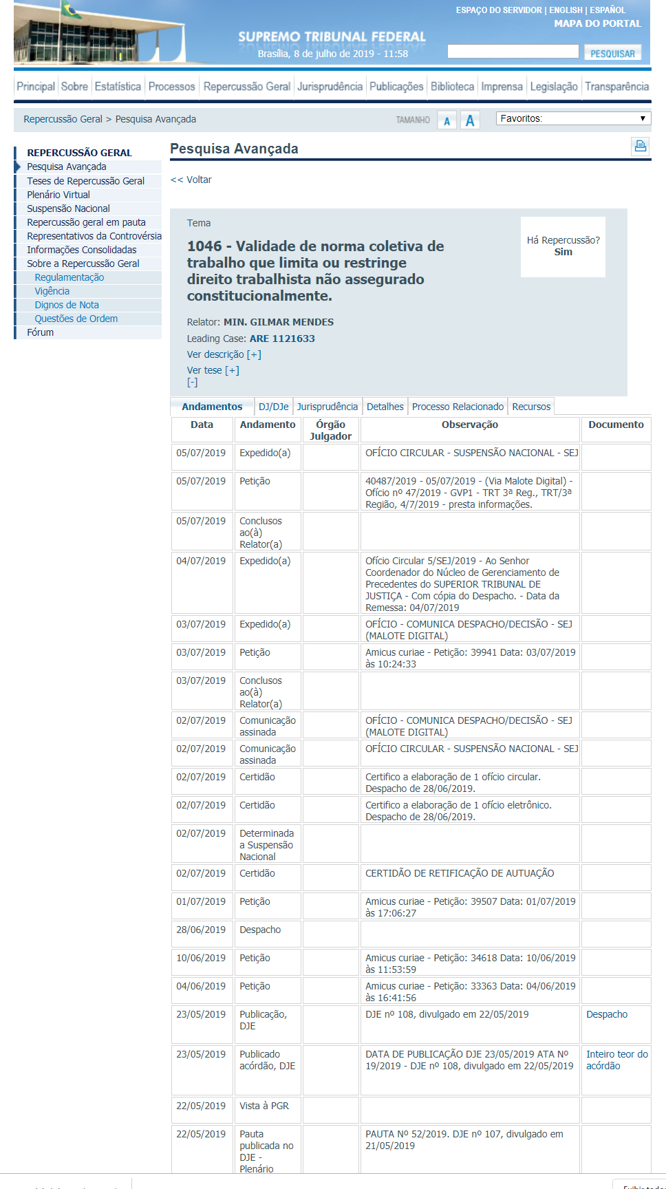 6 thoughts on “Entenda o que é Repercussão Geral, saiba a agenda do STF (agosto) e a importância da mobilização da classe trabalhadora